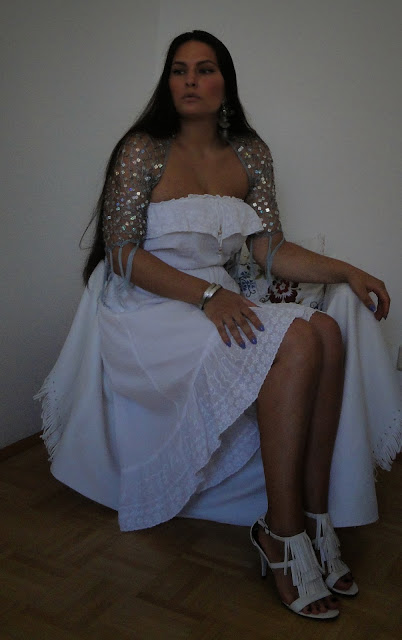 I'm wearing: holographic sequined VINTAGE scarf, TALLY WEIJL dress, ANASTY ART earrings, MILLENNIUM bracelets, ROBERTO shoes.